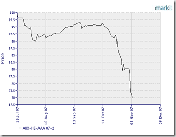According to the press release, Morgan Stanley used ABX indices as a reference point for its ABS asset valuations. Looking at the changes in high grade (AAA) ABX-HE index in the last couple days, it seems that there might be more to write down post Oct 31st.